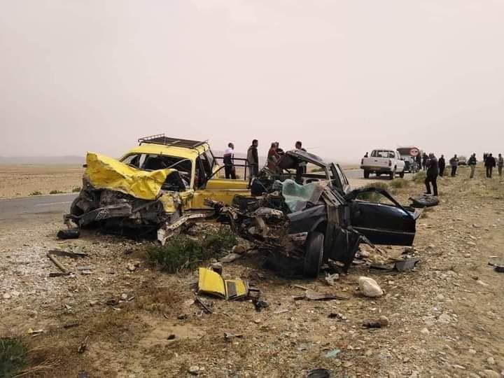 تدخلت الوحدة الثانوية للحماية المدنية عين الملح يوم 2021/04/11 على الساعة 11سا 46 د بمنطقة حشاد على مستوى الطريق الولائي رقم 60 إثر حادث مرور مميت و المتمثل في اصطدام بين سيارتين خلف وفاة 04 اشخاص اعمارهم تتراوح بين 25 سنة و 30 سنة و إصابة 07 اشخاص آخرين تتراوح اعمارهم بين 14 سنة و 50 سنة تم اسعافهم و نقلهم إلى مستشفى عين الملح .