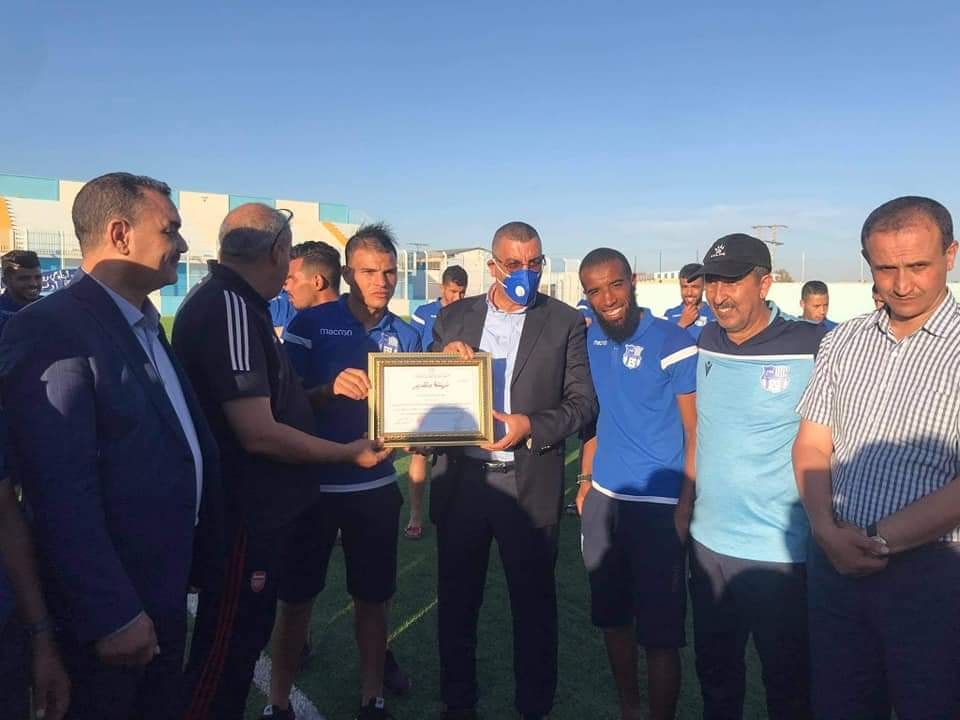 السيد الوالي برفقة السيد رئيس المجلس الشعبي الولائي، وبحضور السيد رئيس النادي وكل من السادة رئيس دائرة مقرة ورئيس المجلس الشعبي لبلدية مقرة وكذا الطاقم الفني للفريق، في زيارة تشجيع لفريق نجم شباب مقرة المنتمي للقسم المحترف الأول، شاكرا اياهم على فوزهم المسجل بالمباراة التي جمعته مع فريق شباب الساورة يوم الجمعة المنصرم.