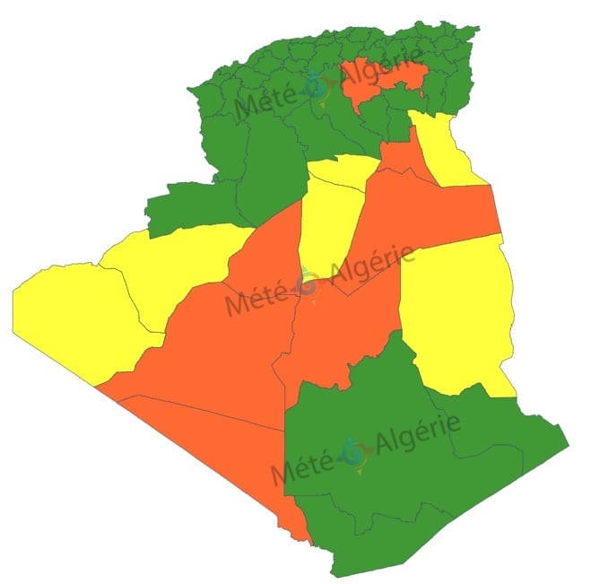 مصالح الديوان الوطني للأرصاد الجوية الجزائرية، تضع تنبيه من المستوى الثاني باللون الاصفر، خاص باستمرار موجة الحر التي تميز بعض مناطق الوطن هذه الأيام