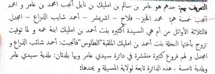 والجواب على ذلك نجده عند الباحث تناح لخضر بن محمد الحمدي النايلي الذي ذكر في معرض حديثه عن زواج محمد بن سيدي عامر ، انه تزوج من بنتي عمه احمد بن مليك ، وهما : اكثيرة و النخلة (3) .