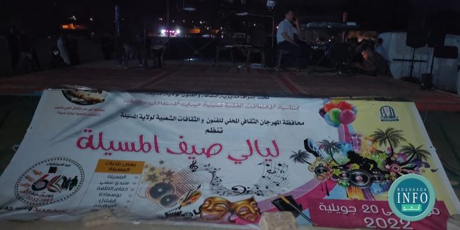بمناسبة الاحتفالات المخلدة للذكرى 60 لعيد الاستقلال والشباب ومن تنظيم مديرية الثقافة لولاية المسيلة لم توفق محافظة المهرجان الثقافى المحلي للفنون والثقافات المحلية الشعبية لولاية المسيلة خلال ليالي صيف مسيلة في أقامة الحفل بالمنتزه التيرة الخضراء الذي كان منتظر تنشيطه من طرف الفنانة رحاب دريش والفنان شريف حمادة بسبب أنقطاع الكهرباء ..