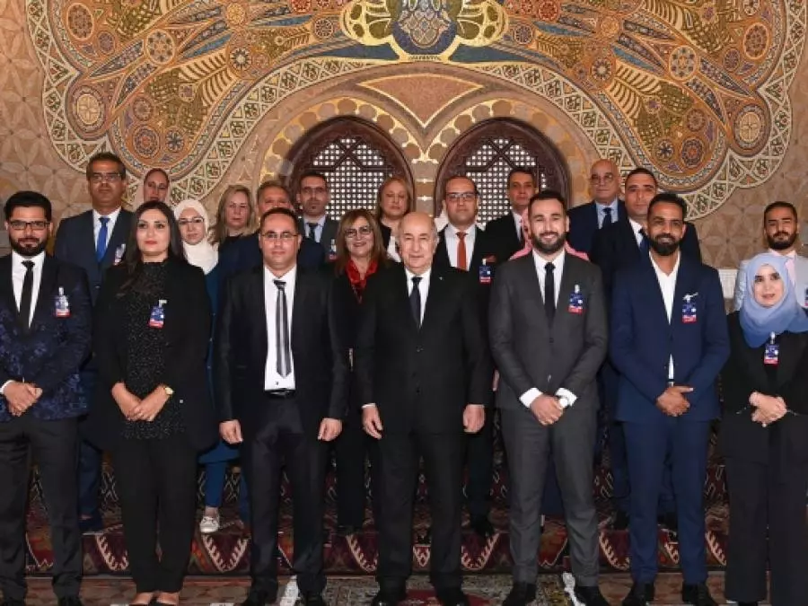 وجرى حفل التكريم بقصر الشعب بحضور كل من رئيس مجلس الأمة, السيد صالح قوجيل, رئيس المجلس الشعبي الوطني, السيد إبراهيم بوغالي, الوزير الأول, السيد أيمن بن عبد الرحمان, رئيس المحكمة الدستورية, السيد عمر بلحاج, رئيس أركان الجيش الوطني الشعبي الفريق أول السعيد شنقريحة, مدير ديوان رئاسة الجمهورية, السيد عبد العزيز خلف, الأمين العام لرئاسة الجمهورية, السيد منجي عبد الله, ووزير الاتصال, السيد محمد بوسليماني, إلى جانب أعضاء من الحكومة ومستشارين لرئيس الجمهورية ومسؤولين سامين وعدد من الإعلاميين.