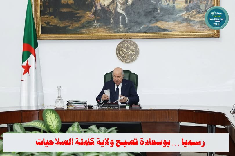بوسعادة – في خطوة تاريخية هامة، أعلن اليوم أن مقاطعة بوسعادة الإدارية ارتقت إلى ولاية كاملة الصلاحيات، ضمن 11 مقاطعة بالهضاب العليا والجنوب تم ترقية وضعها الإداري، وذلك خلال اجتماع مجلس الوزراء الذي ترأسه رئيس الجمهورية السيد عبد المجيد تبون، القائد الأعلى للقوات المسلحة وزير الدفاع الوطني.