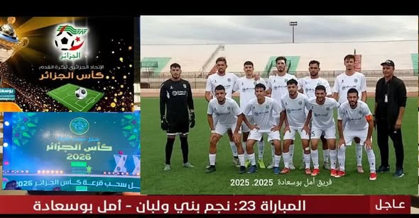 وأسفرت القرعة عن وقوع أمل بوسعادة في مواجهة نجم بني ولبان، في لقاء يعدّ من بيهم أجمل مباريات هذا الدور نظرًا لطموحات الفريقين ورغبة كل منهما في بلوغ أدوار متقدمة من منافسة السيدة الكأس وقد يكون ملعب سكيكدة مكان اقامة اللقاء .