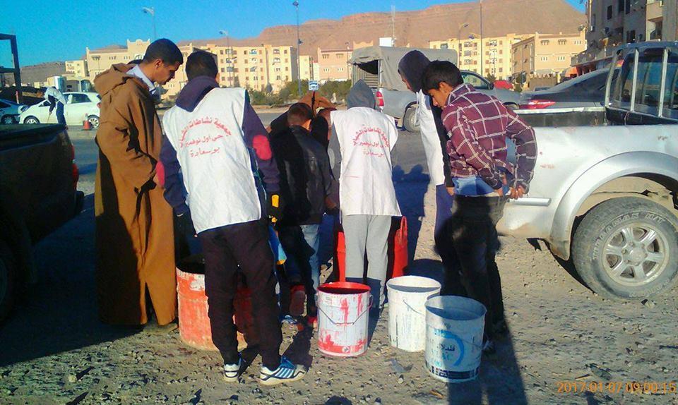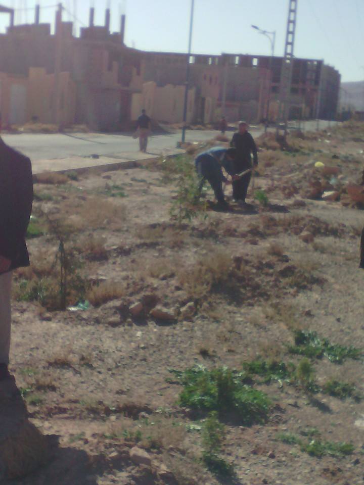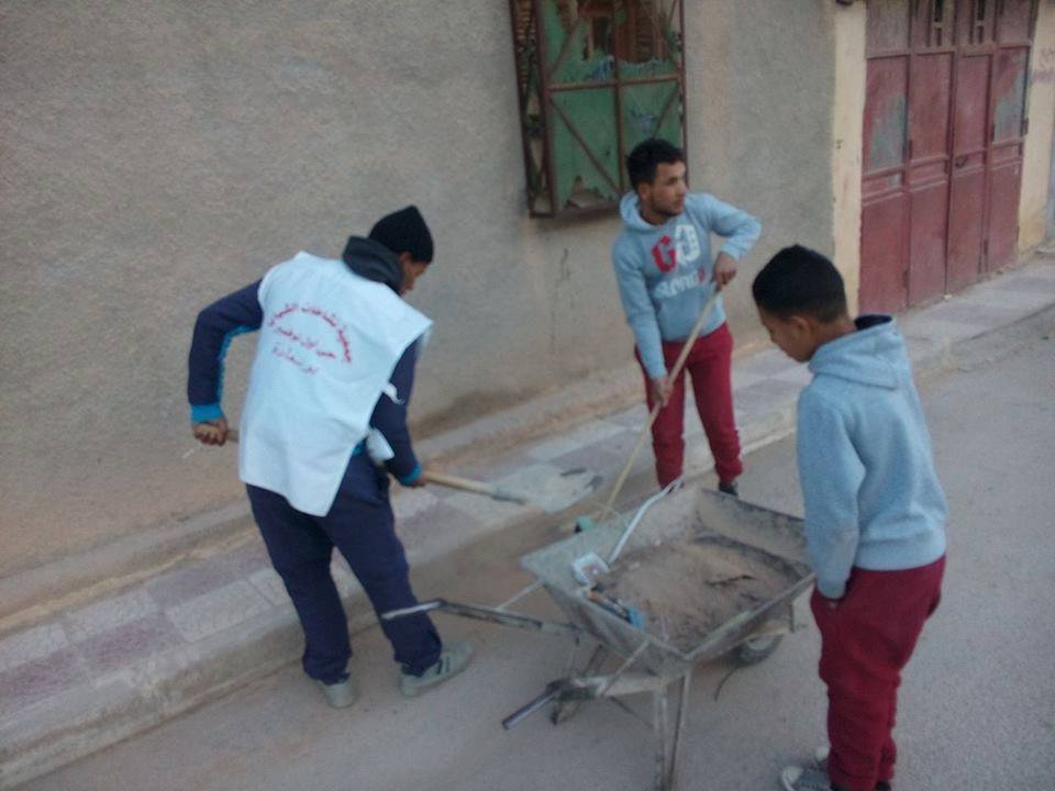 العملية التطوعية في حي اول نوفمبر سكان الحي ومنتسبو جمعية نشاطات الشباب وجمعية الرملاية التطوعية في اطار الحملة الولائية الكبرى تحت رعاية السيد والي الولاية