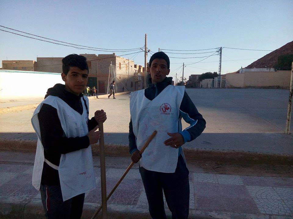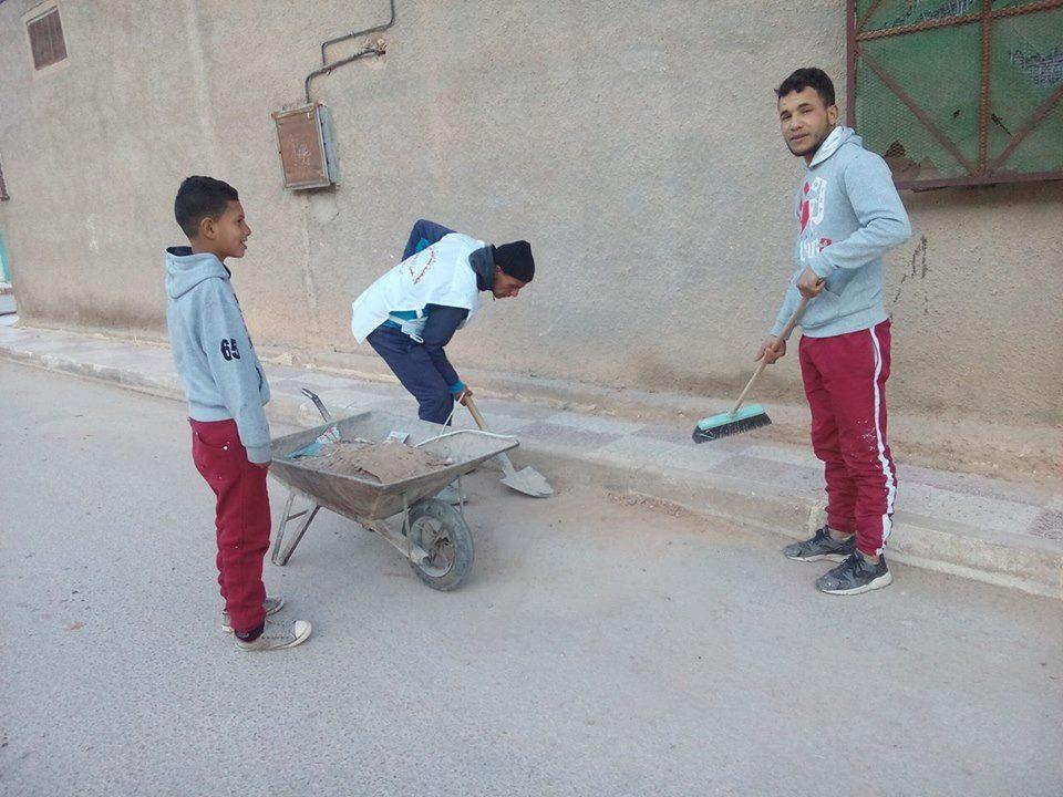 عملية التنظيف في طريق الجزائر لجمعية نشاطات الشباب المركز الثقافي