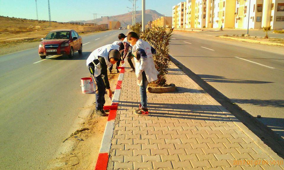 من بين الانشطة الخارجية للجمعية طلاء ارصفة طريق الجزائر مدخل مدينة بوسعادة شكرا للشباب الطموح هكذا تبنى الامم التطوع عمل أخلاقي يرسم سمات الشخصية المتحضرة والمتخلقة °°°°° معا لبناء الوطن ولم الشمل °°°°°