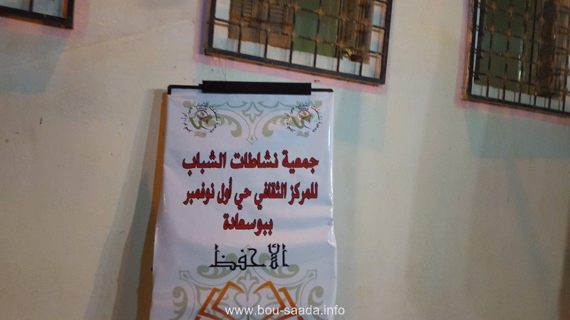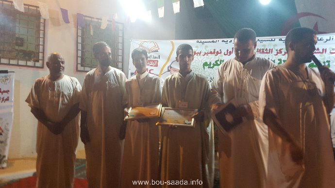 اقامت جمعية نشاطات الشباب للمركز الثقافي حي اول نوفمبر ببوسعادة حفل مسابقة الاحفظ للقران الكريم في طبعتها الثالثة