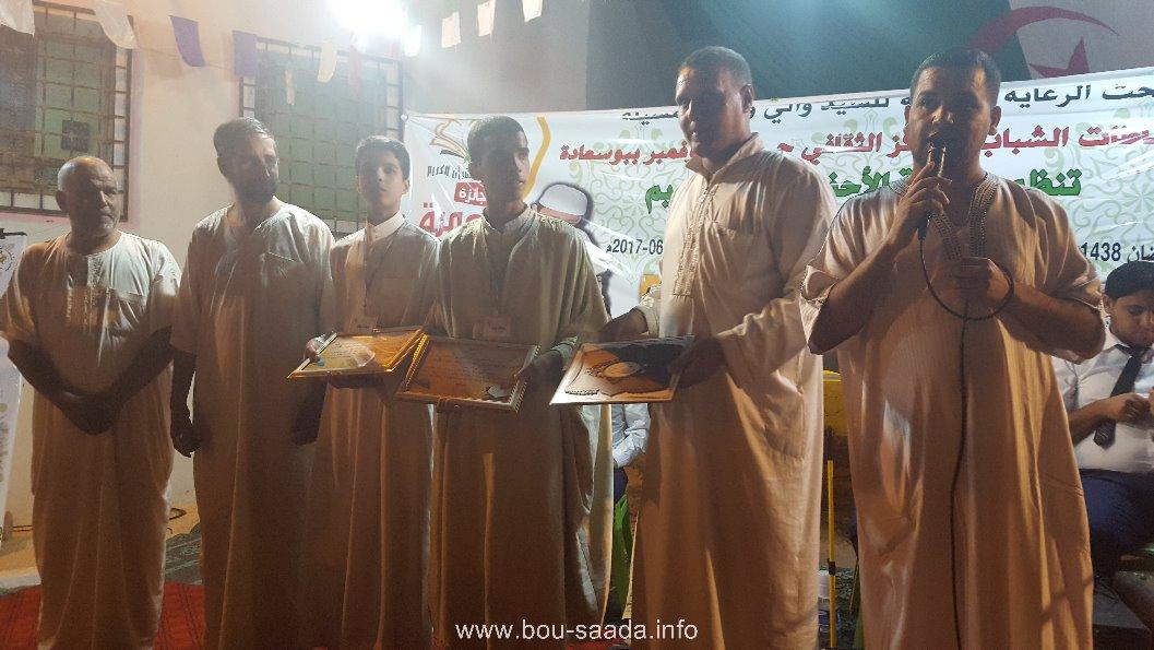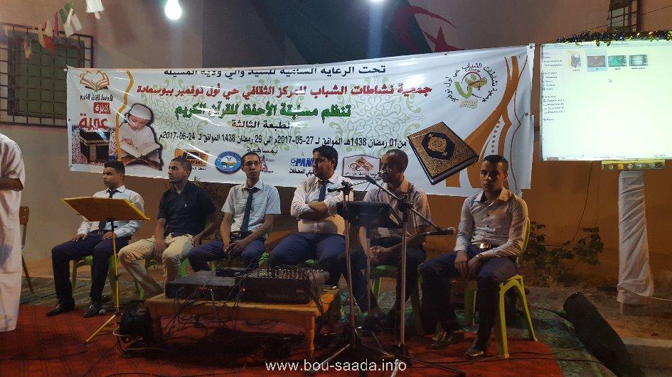 وهذا سهرة الثلاثاء 20 جوان الموافق 25 رمضان من عام 2017 حضرها رئيس بلدية بوسعادة ومسؤول امن دائرة بوسعادة وممولين المسابقة واعضاء من المجالش النيابية والمجتمع المدني وأئمة وضيوف والمصلين نشطتها الفرقة الانشادية بقيادة الاخ صغيري