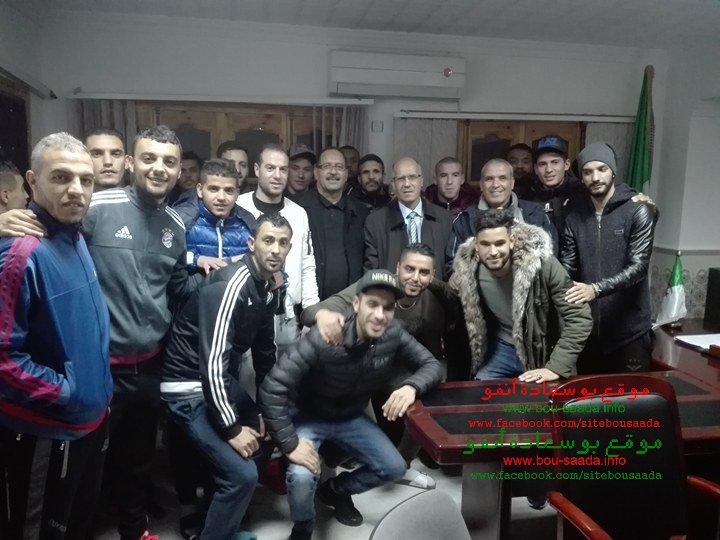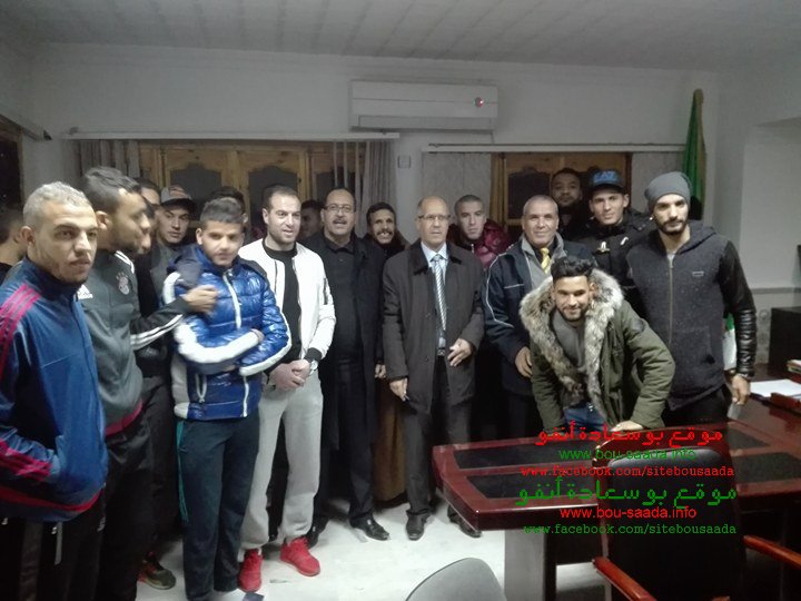 أجتمع رئيس بلدية بوسعادة الجديد السيد عمران لمبارك مع بعض من أعضاء اللجنة المسيرة للفريق وهم ميلود درفلوا ومفتاح مبروكي والحاج لصفر ..و التى تم أنشائها امس ألاحد ولاعبي امل بوسعادة أمسية هذا اليوم ألاثنين 04 دسمبر 2017 بمقر البلدية حيث طمئنهم على حقوقهم وكل المستحقات التى يدينونها للفريق وكلف اللجنة بالسهر علي الفريق وتسييره المقابلتان ألاخيرتان من مرحلة الذهاب للبطولة والى غاية عقد الجمعية العامة للفريق